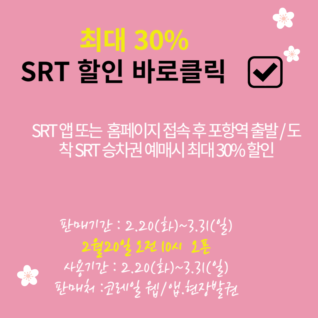 포항역에서 출발하거나 도착하는 SRT 열차 승차권을 예매할 경우 최대 30% 할인 혜택을 받을 수 있습니다.