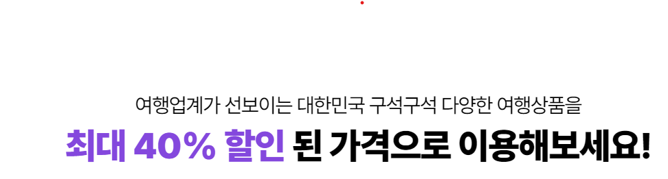 여행가는 달 기간 동안 대한민국 여기저기, 구석구석을 둘러봄으로 대한민국의 아름다움을 재발견할 수 있는 다양한 지약여행상픔을 40% 할인 가격으로 더 기분 좋은 여행을 준비하시기 바랍니다.
