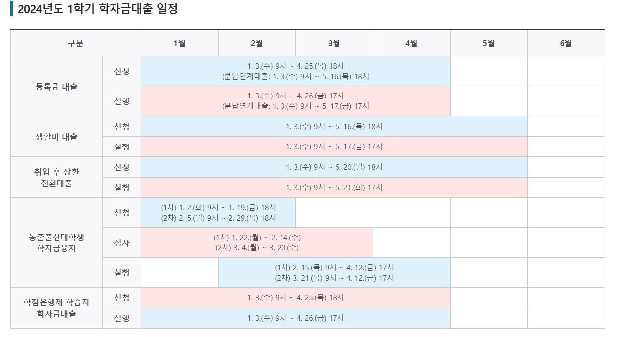 ● 20024년 1학기  학자금 대출 일정
